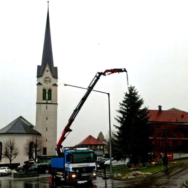 Wir durften den diesjährigen Christbaum der Gemeinde Lingenau wieder an seinen Platz stellen und schmücken.