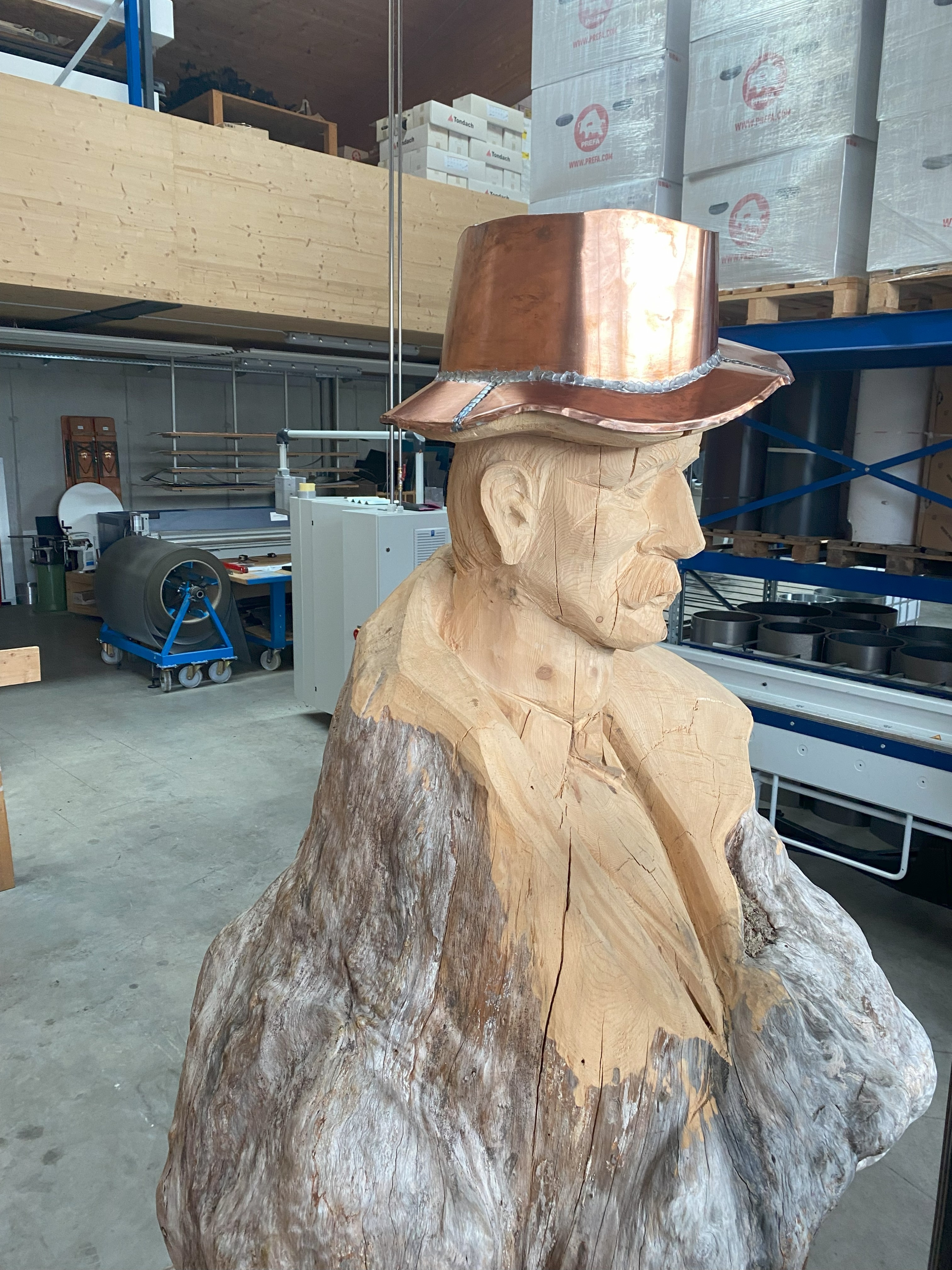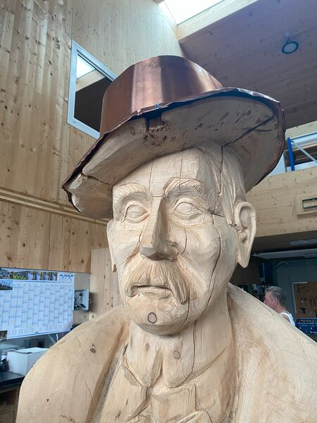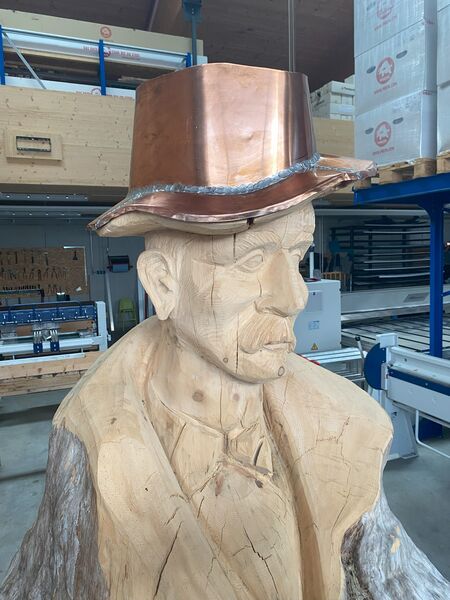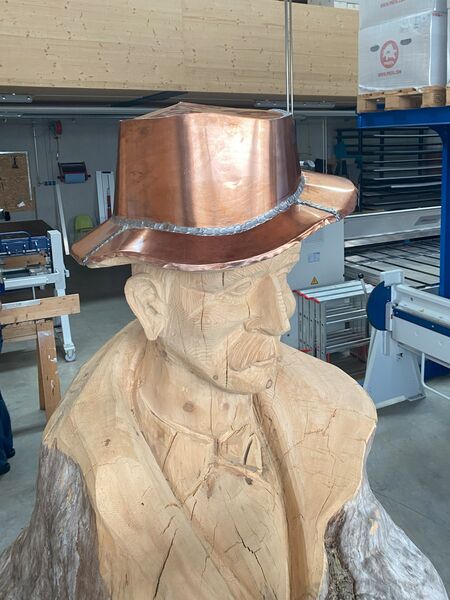 Ein ganz besonderes Projekt durften wir für Christopf H. machen. Einen Kupferhut für einen alten Mann, der aus einem Baumstamm geschnitzt wurde.