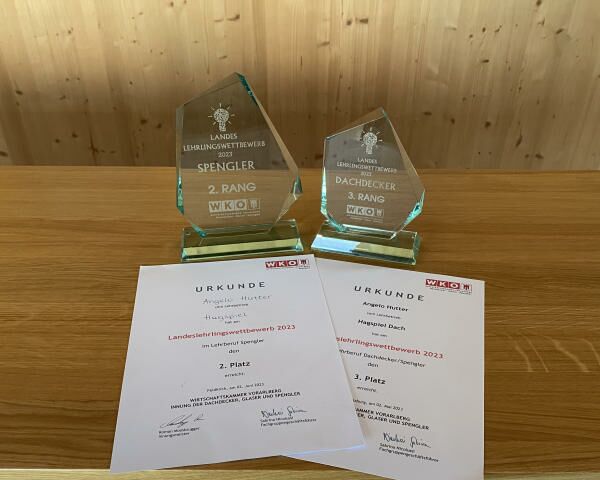 Angelo holt beim Landeslehrlingswettbewerb der Spengler den 2. Platz sowie beim Dachdecker den 3. Platz.
